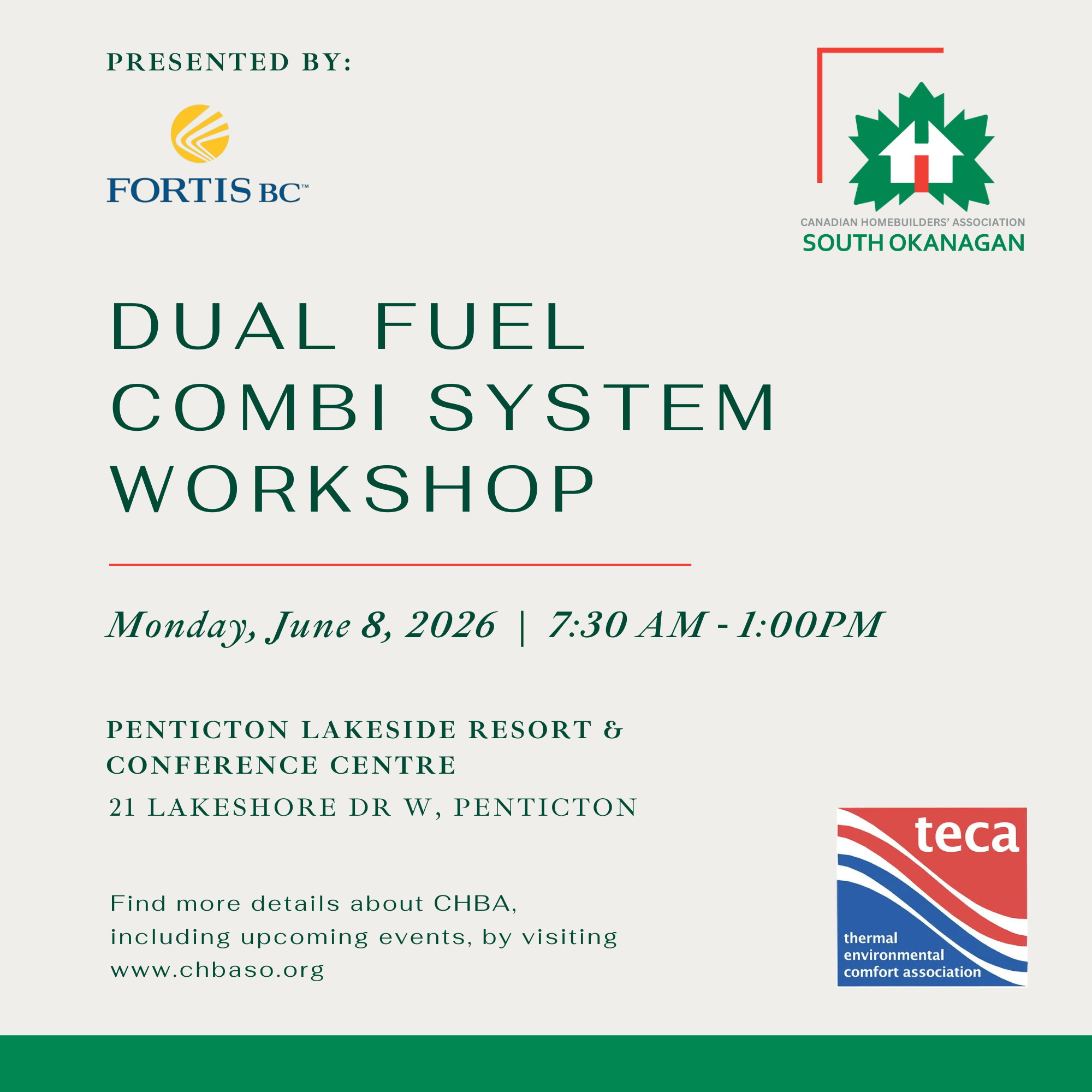 FortisBC and TECA are pleased to present a Dual Fuel Combi System Workshop designed to help builders, energy advisors, and heating contractors better understand dual fuel heating systems—from design and installation to compliance with Step 4 of the BC Energy Step Code.