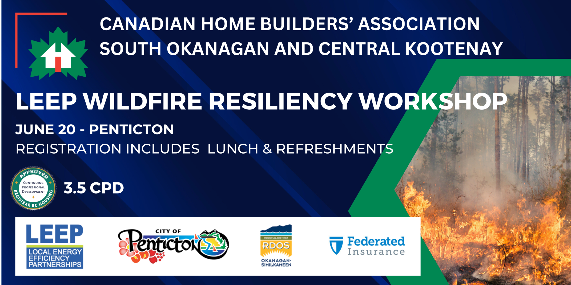 This educational event will focus on construction-based solutions for building wildfire resistant homes in B.C.. Experts from RDH Building Sciences, Natural Resources Canada, and others in the field will discuss how to incorporate non-combustible building materials, envelope details, fire-rated wall assemblies, and exterior fire prevention measures into Part 9 housing construction. There will be 3 technical based presentations: 1) Envelope details and materials. Namely, points of entry in the home where embers can penetrate the structure, and the substitution of combustible building materials for non-combustible ones. 2) Constructing a 1hr fire-rated wall assembly. Looking at the different solutions and materials that can be incorporated into a wall assembly to achieve a 1-hr fire-rating. 3) Measures that can be taken outside of the house to improve wildfire resistance. A series of infographics and guides, created by NRCan, will be highlighted throughout the event. Participants will receive access to these resources to support the implementation of wildfire resistant construction measures.