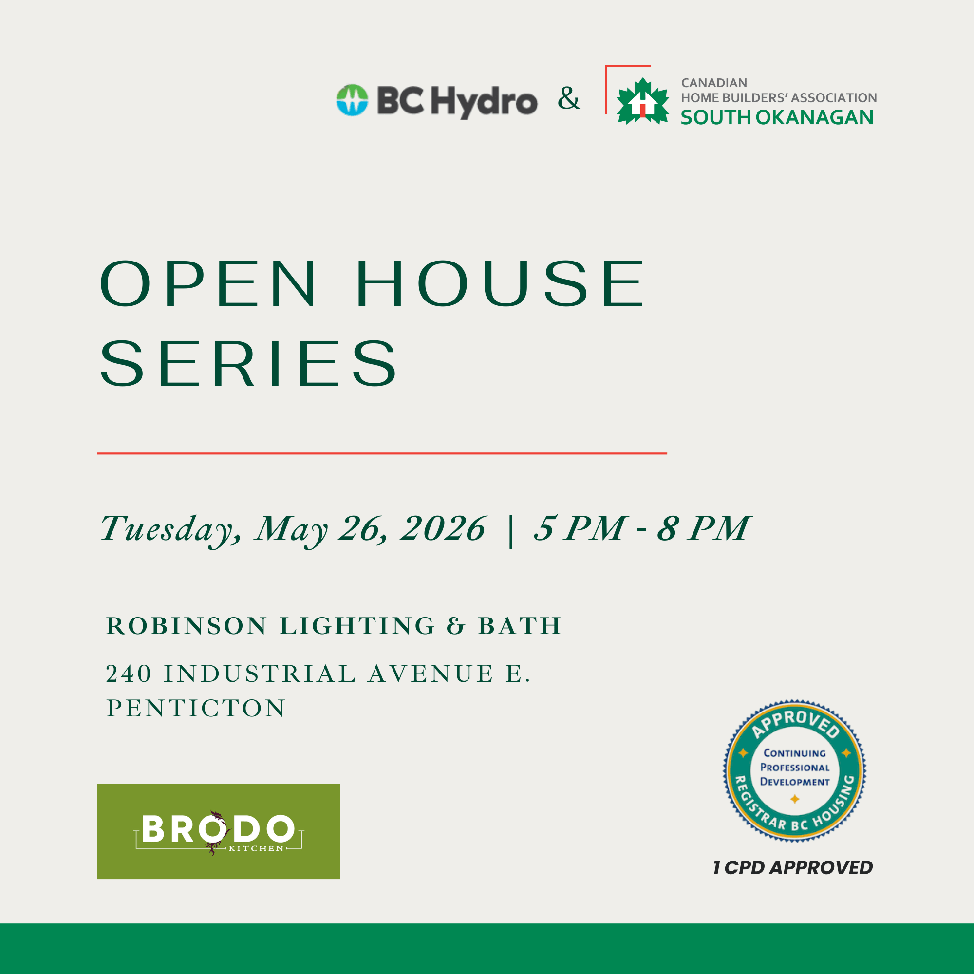 Join us for our CHBA South Okanagan 'Open House' Series, sponsored by BC Hydro.