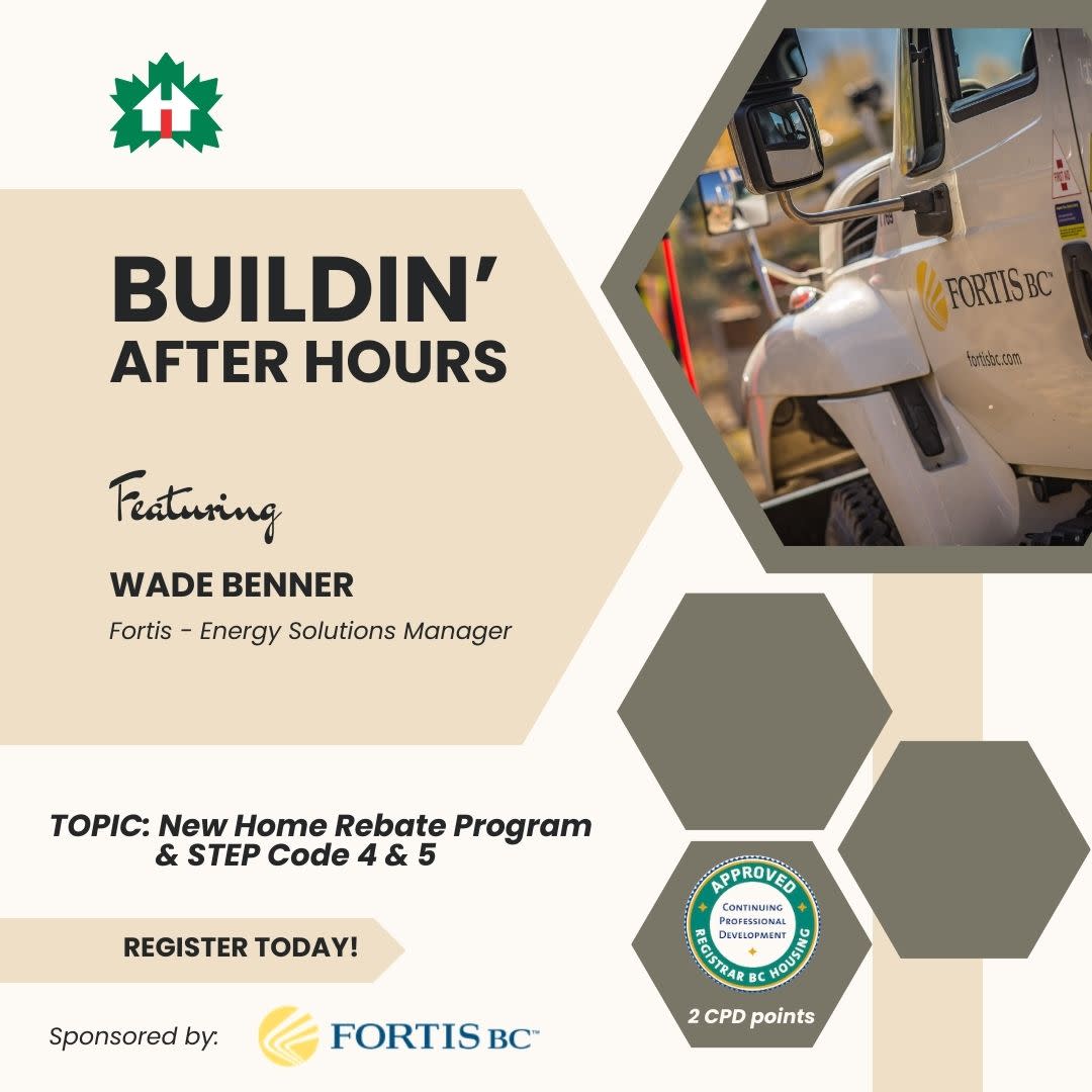 Join Wade Benner, Energy Solutions Manager at FortisBC, for an in-depth presentation on the Step Code 4 and 5 New Home Program rebates available from FortisBC. Learn about eligible mechanical systems, with a focus on combination systems that integrate space and water heating to enhance efficiency. Wade will also discuss the Integrated Design Process, which encourages collaboration among stakeholders to optimize building performance and streamline the design process.