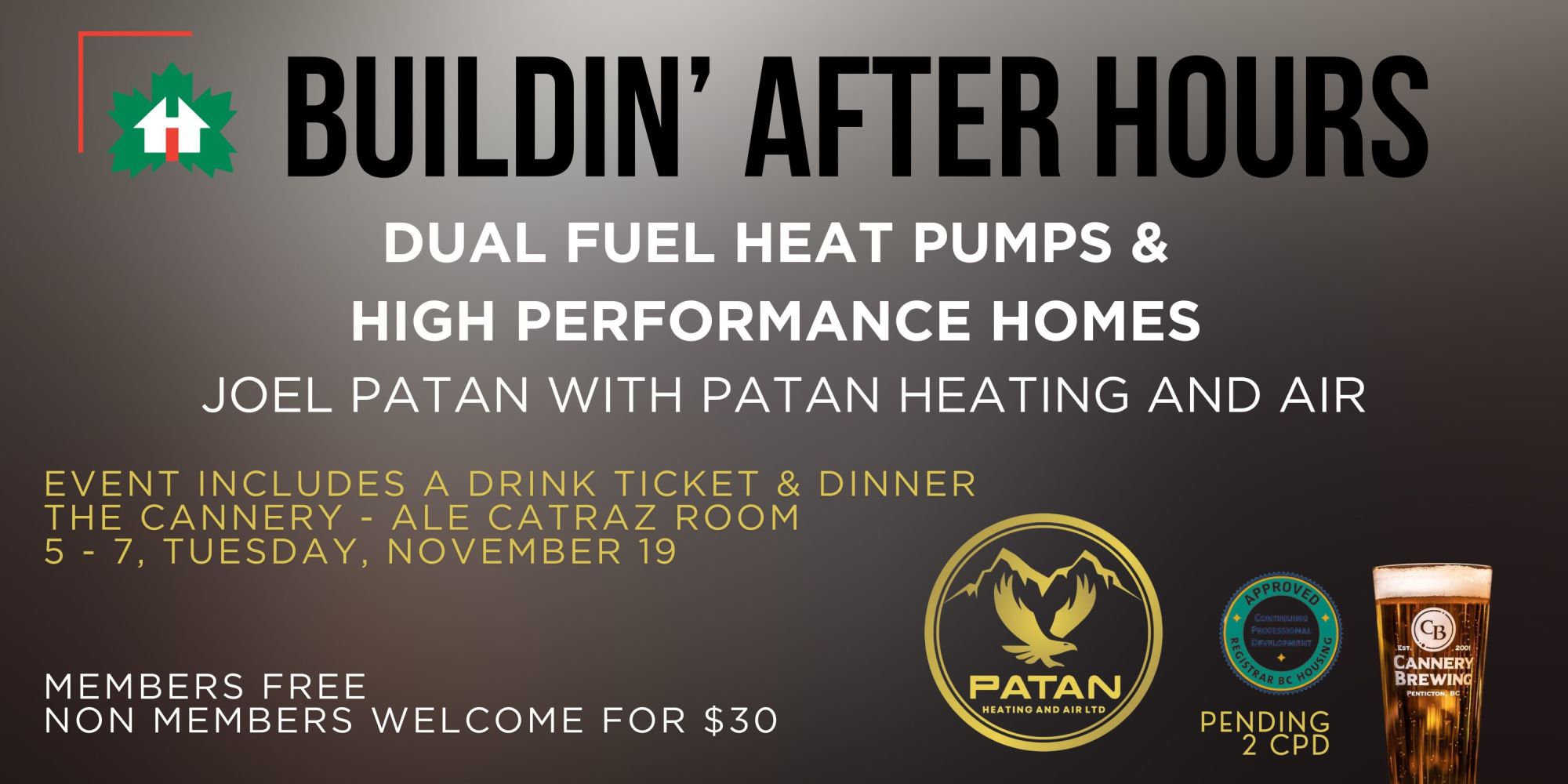 Join us for the next Builin' After Hours in the Ale Catraz room at the Cannery on November 19! Speaker from Patan Heating & Air will discuss dual fuel heat pumps in high performance homes. Dinner, beers and networking with friends after work. Members and Non-Members please register through the link!