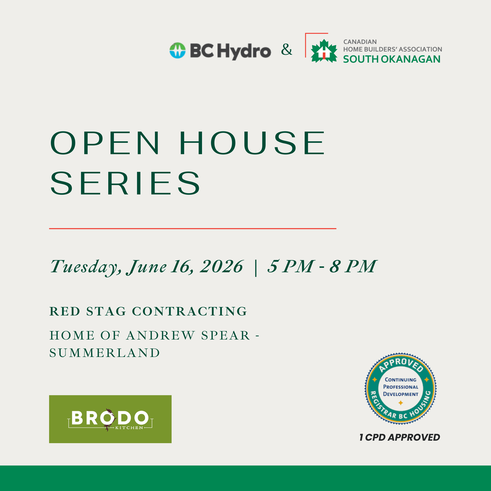 Join us for our CHBA South Okanagan 'Open House' Series, sponsored by BC Hydro.