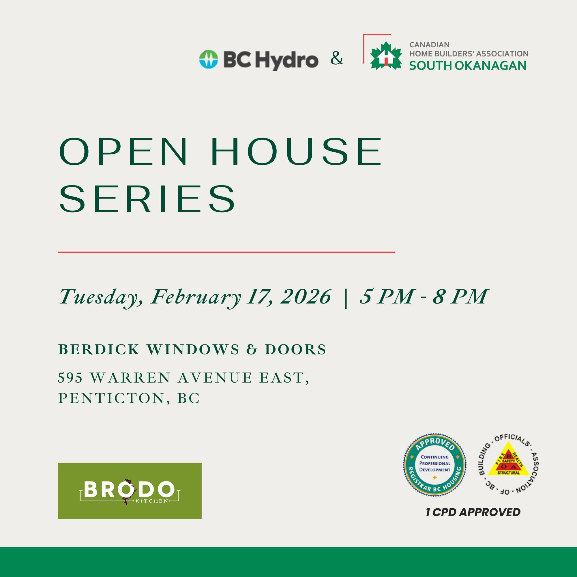 Join us for our CHBA South Okanagan 'Open House' Series, sponsored by BC Hydro.